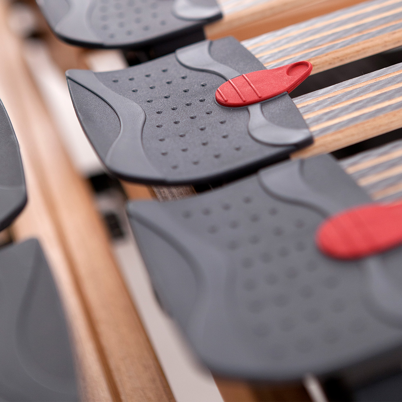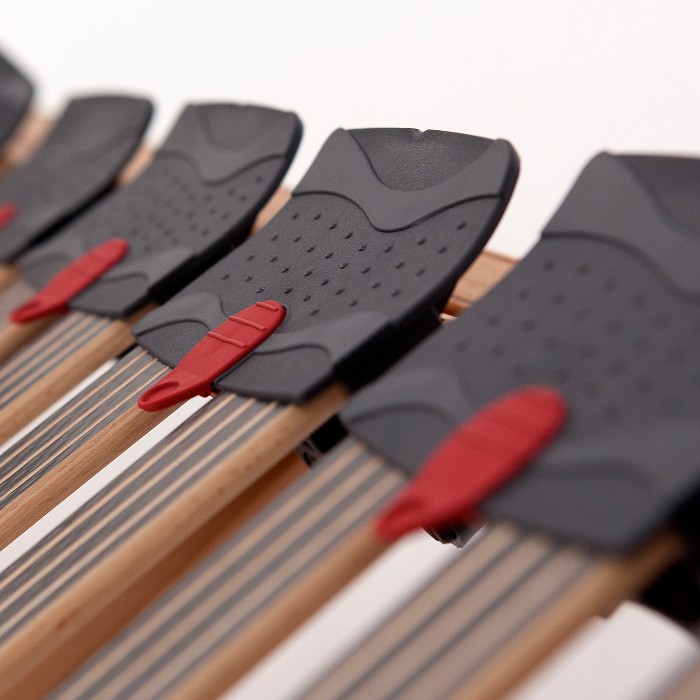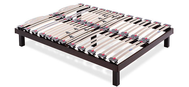 Creado para reforzar la zona lumbar. El refuerzo lumbar pivontante une las láminas por parejas duplicando el nivel de firmeza que ofrecería cada una de ellas de forma independiente. Están especialmente diseñadas para potenciar el soporte de las rótulas de caucho pivotante.