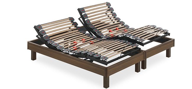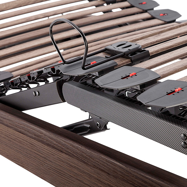 En los somieres articulados las partes móviles son esenciales ya que permiten que la cama se adapte al cuerpo. El uso de articulaciones de madera laminada de haya garantiza una adaptación óptima de pesos y elasticidad a cada parte del cuerpo, asegurando al mismo tiempo la máxima durabilidad.