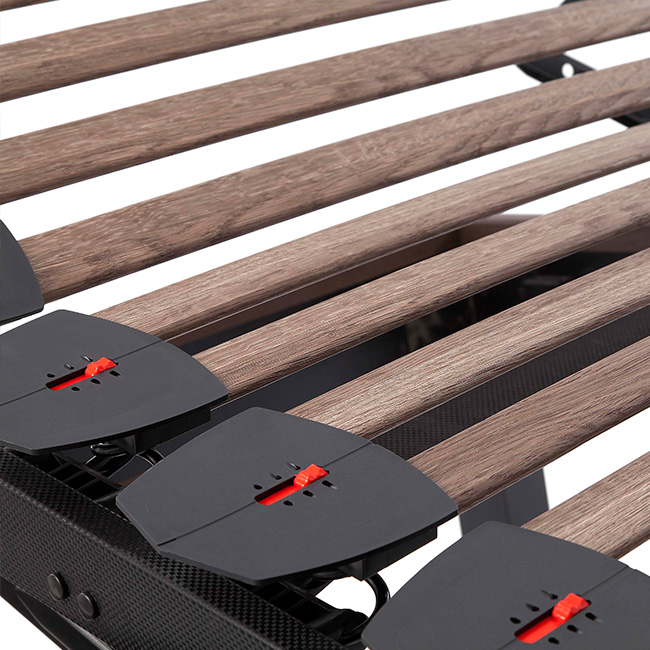 No disponible en medida de 105 cm por el mayor grosor de las láminas. - Cinco planos de articulación, articulaciones y travesaños de madera laminada con mecanizado circular, que aportan estabilidad, resistencia al peso y acabado en imitación fibra de carbono.