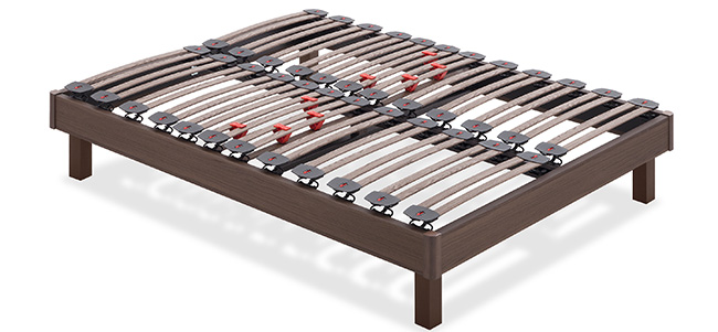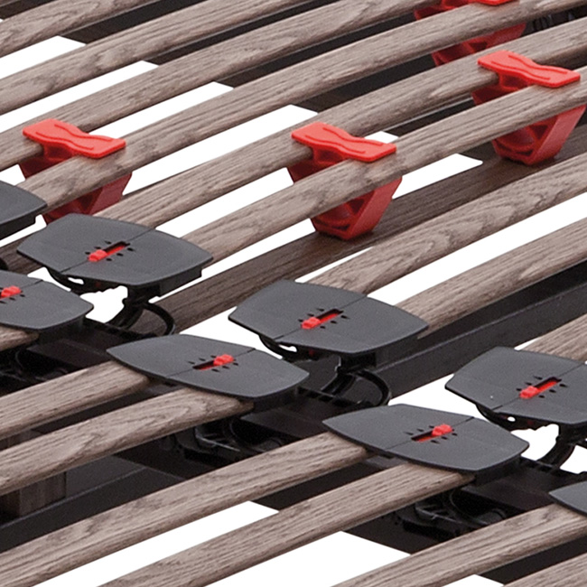 Creado para reforzar la zona lumbar. El refuerzo lumbar pivontante une las láminas por parejas duplicando el nivel de firmeza que ofrecería cada una de ellas de forma independiente. Están especialmente diseñadas para potenciar el soporte de las rótulas de caucho pivotante.