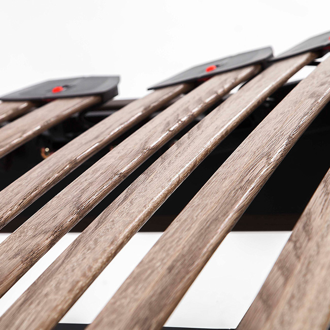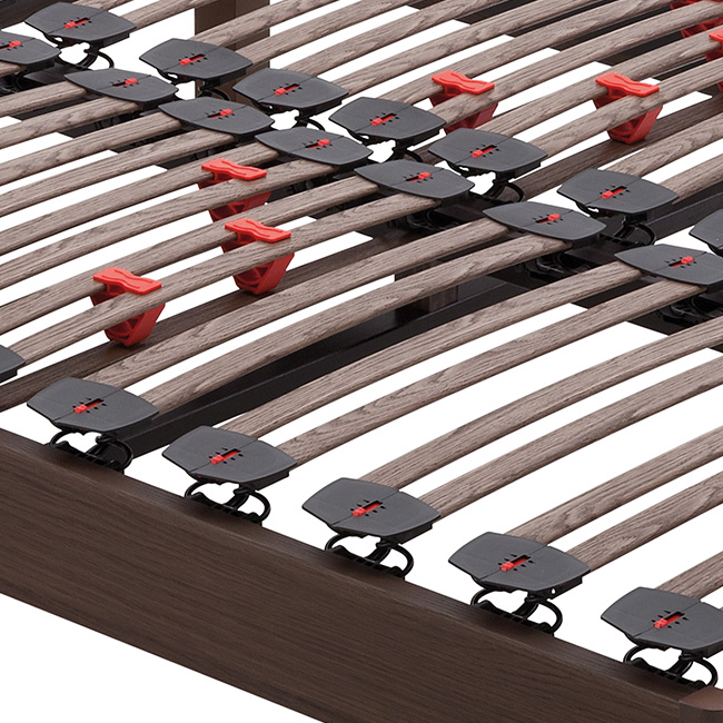 Con laminado en madera haya vaporizado, ofrece la mejor combinación de resistencia, elasticidad y durabilidad. La disposición de los laminados en contramallado, multiplica la resistencia y robustez. De esta forma asegura que el somier se mantenga de forma perfecta durante muchos años.