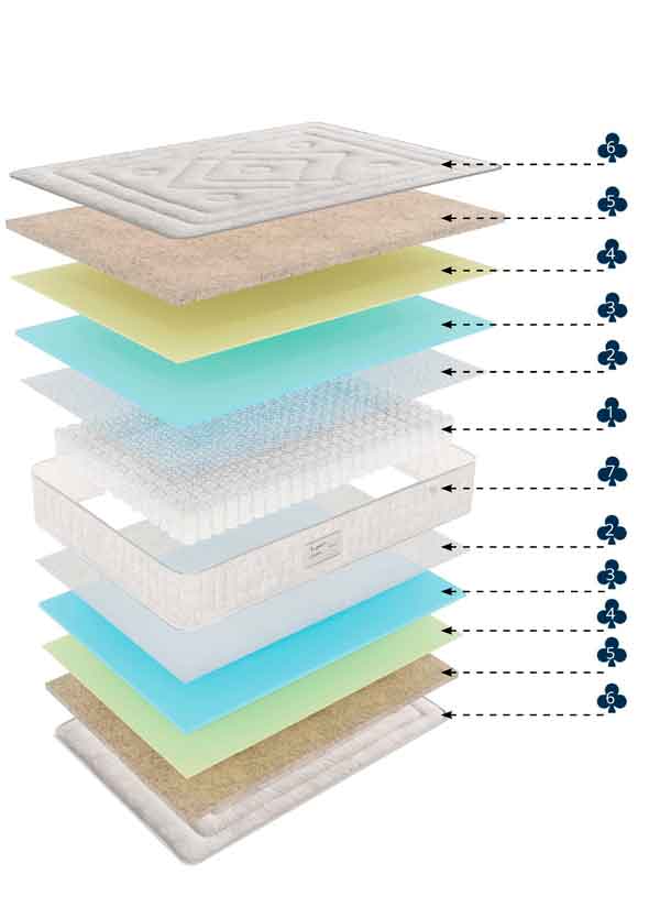 1. Núcleo de muelles ensacados con múltiples zonas de firmeza y transpirabilidad que se adapta a las diferentes partes del cuerpo para ofrecer un descanso óptimo.