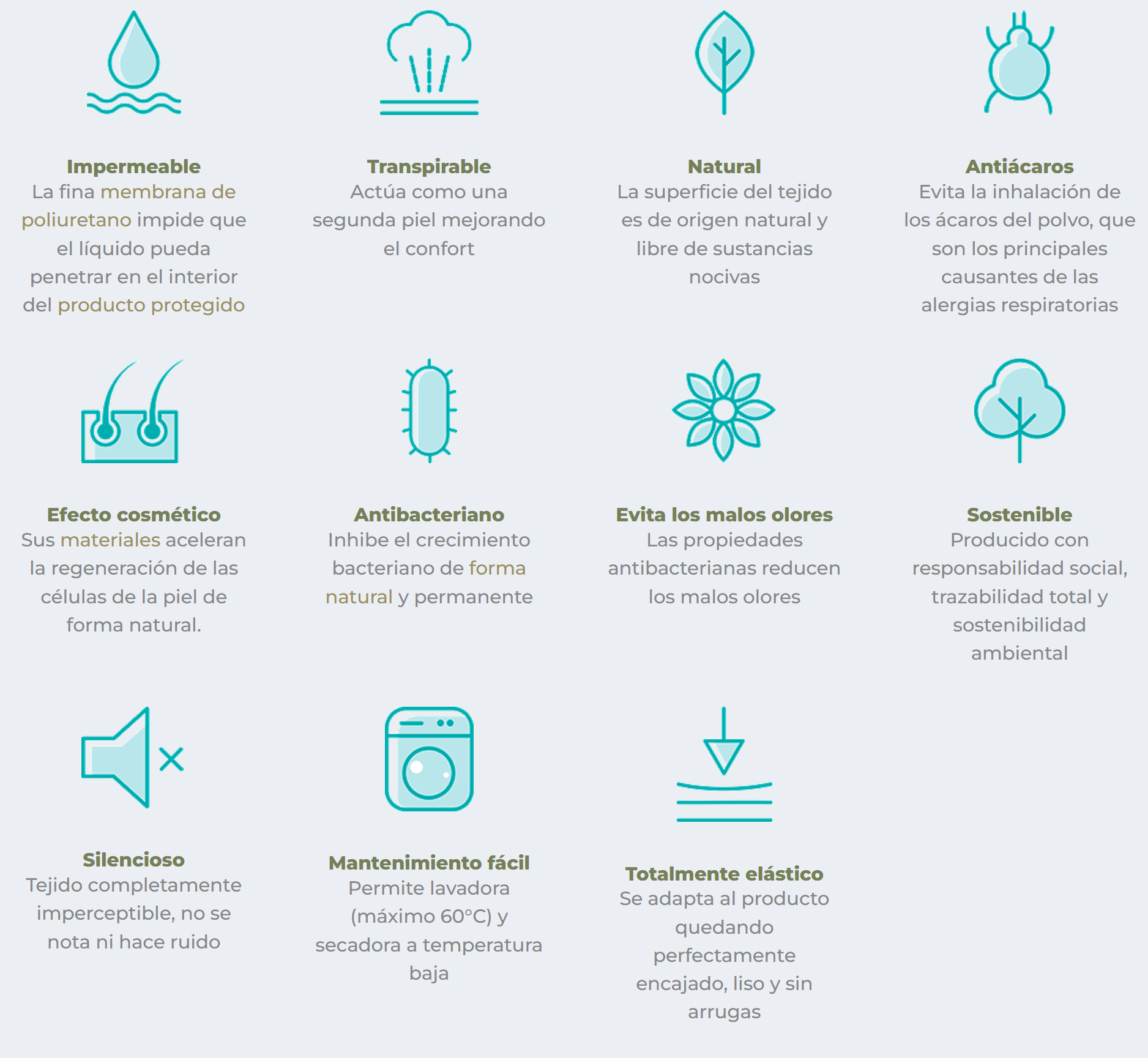 • Barrera protectora contra los ácaros y hongos (adecuada para personas que sufren alergias).