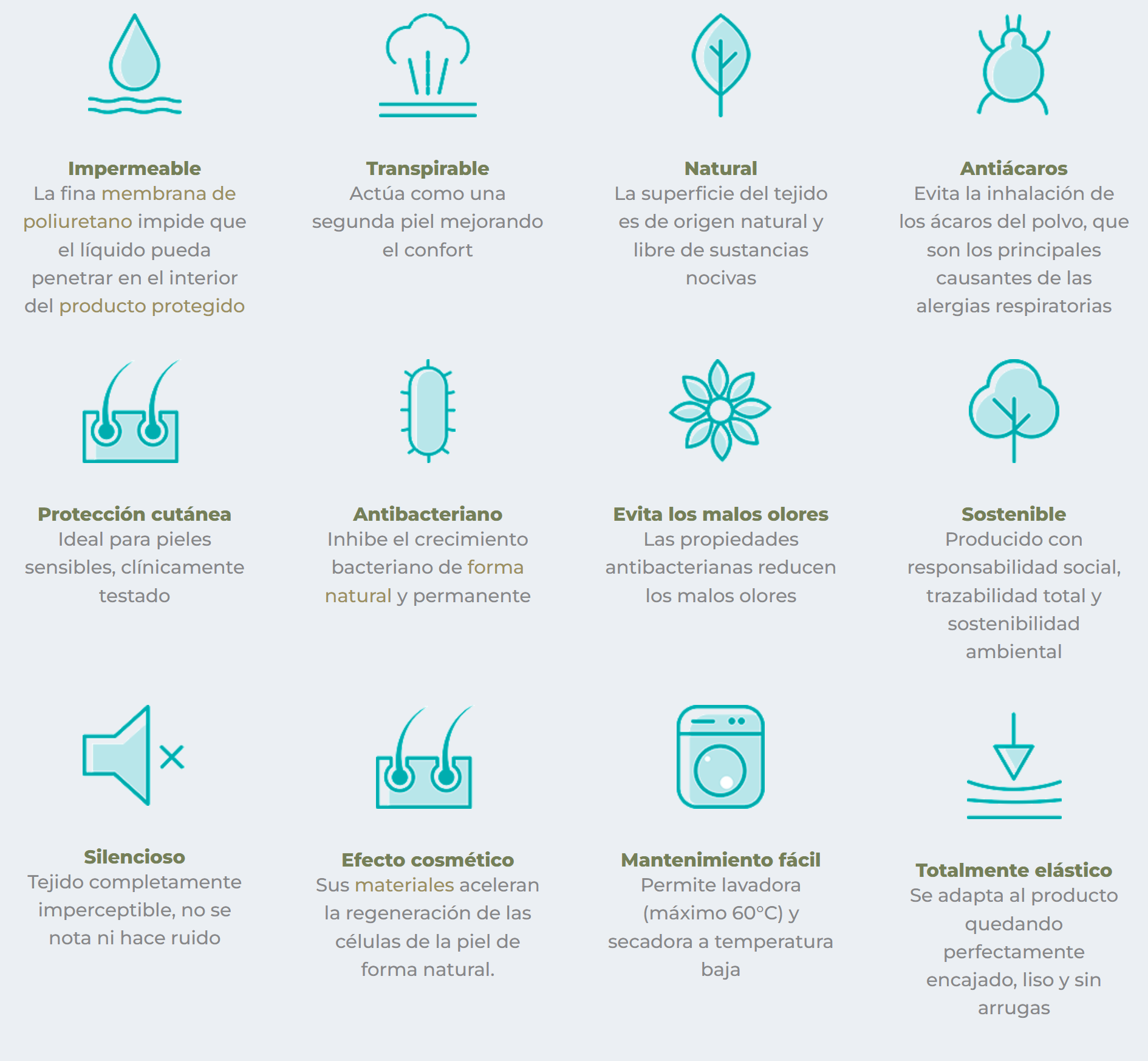 • Barrera protectora (ácaros, hongos, …) adecuada para personas que sufren alergias.