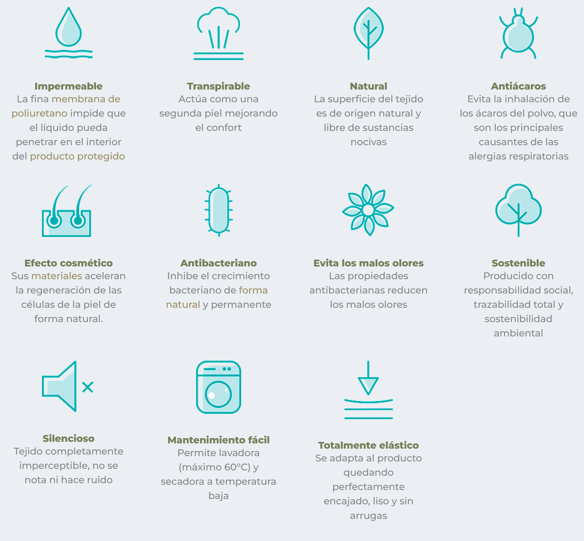 • Barrera protectora contra ácaros, hongos y bacterias.
