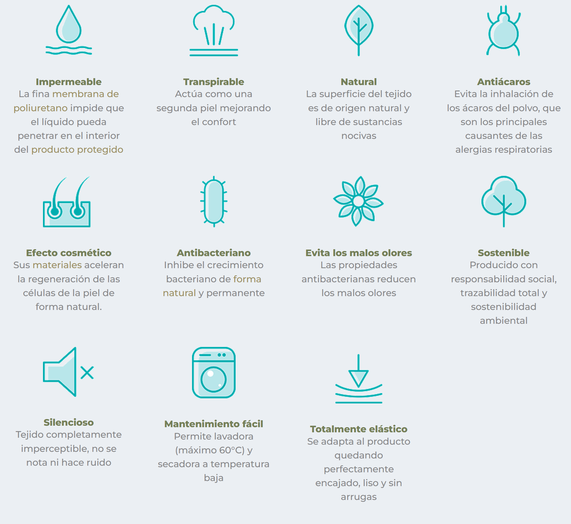 • Barrera protectora contra ácaros, hongos y bacterias.