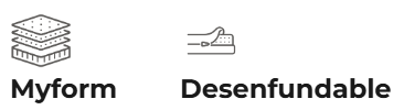 Compuesto por una innovadora estructura molecular que lo hace muy elástico y poco sensible a la temperatura ambiente, para mantener un rendimiento constante en cualquier época del año. Myform Regen garantiza el confort en cualquier posición de descanso. La elasticidad del material ayuda a los movimientos del cuerpo durante el sueño, sin comprometer la capacidad ergonómica.