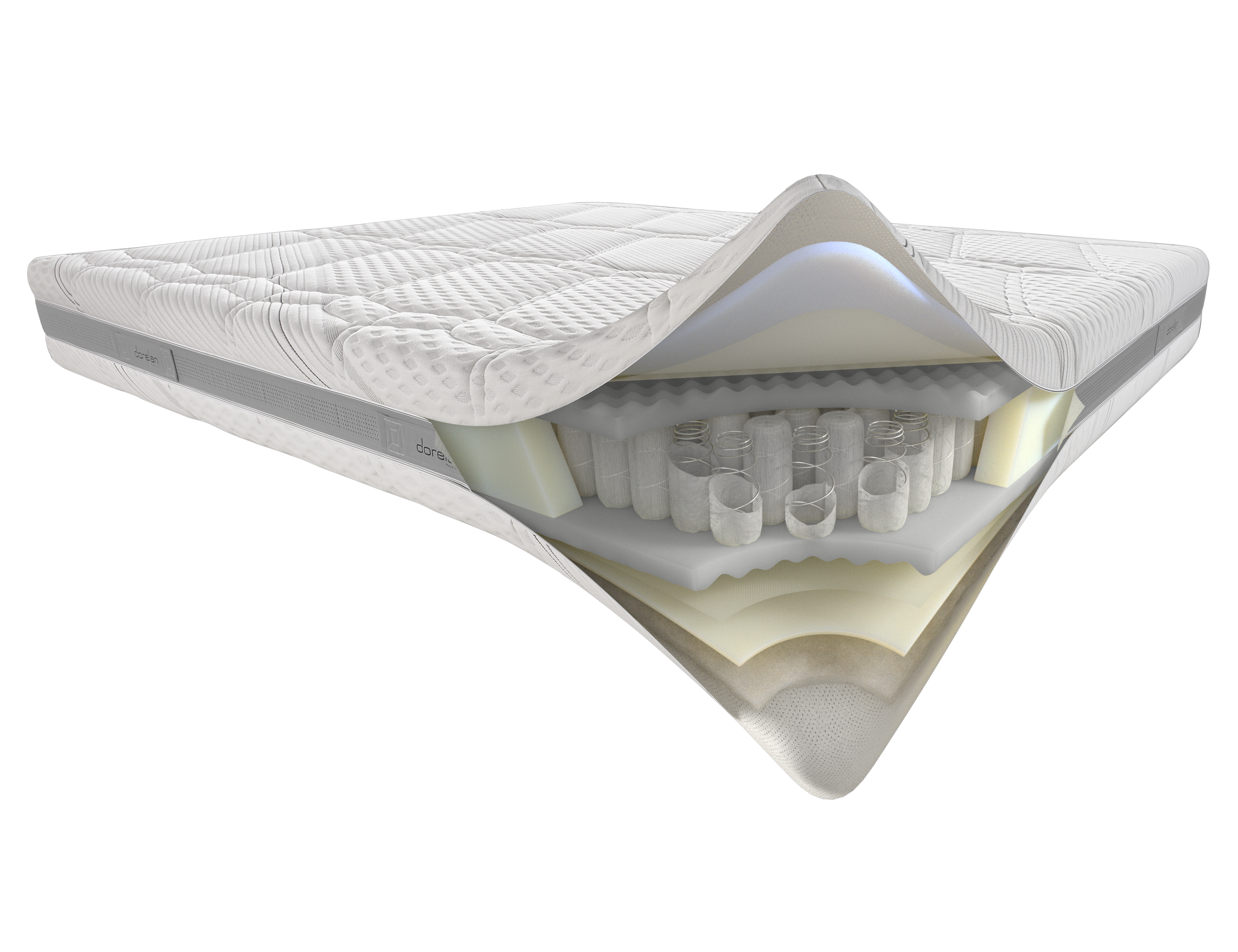 Adaptiv ist das System mit drei Arten von unabhängigen Taschenfedern, die sich durch ihre Steifigkeit unterscheiden. Die Adaptiv-Federn unterscheiden sich durch die Dicke des Drahtes, aus dem sie hergestellt sind, was eine unterschiedliche Tragfähigkeit ermöglicht. Die drei Arten von Federn sind auf innovative Weise in der Matratze verteilt, so dass Zonen mit unterschiedlicher Steifigkeit entstehen, die eine konstante Reaktion auf die wechselnde Belastung des Körpers auf der Matratze gewährleisten. Um das Besteigen und Verlassen der Matratze zu erleichtern, besteht der äußere Rand aus Federn mit erhöhter Steifigkeit.
