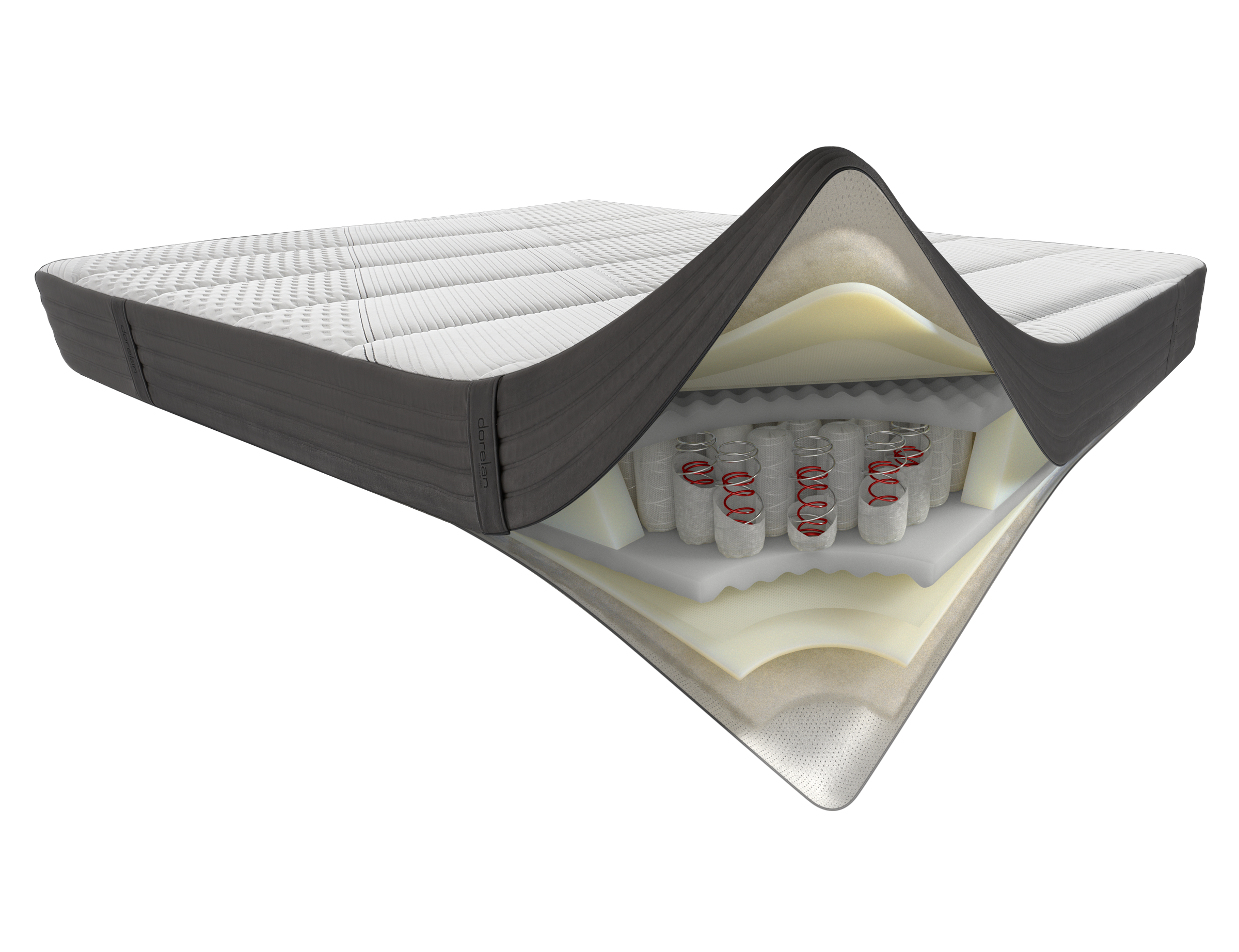 Sistema de muelles independientes y ensacados, dotado de un muelle doble concéntrico capaz de ofrecer un soporte equilibrado, perfecto para cualquier complexión corporal en cualquier posición de reposo. El muelle exterior asegura confort y ergonomía; el muelle más interior aumenta el soporte con el incremento de la presión ejercida por el cuerpo sobre el colchón. Los muelles se distribuyen en siete zonas diferenciadas, cada una de las cuales está calibrada para adaptarse a la tensión y la presión del cuerpo sobre el colchón, manteniendo una acogida progresiva en función de los puntos de contacto.