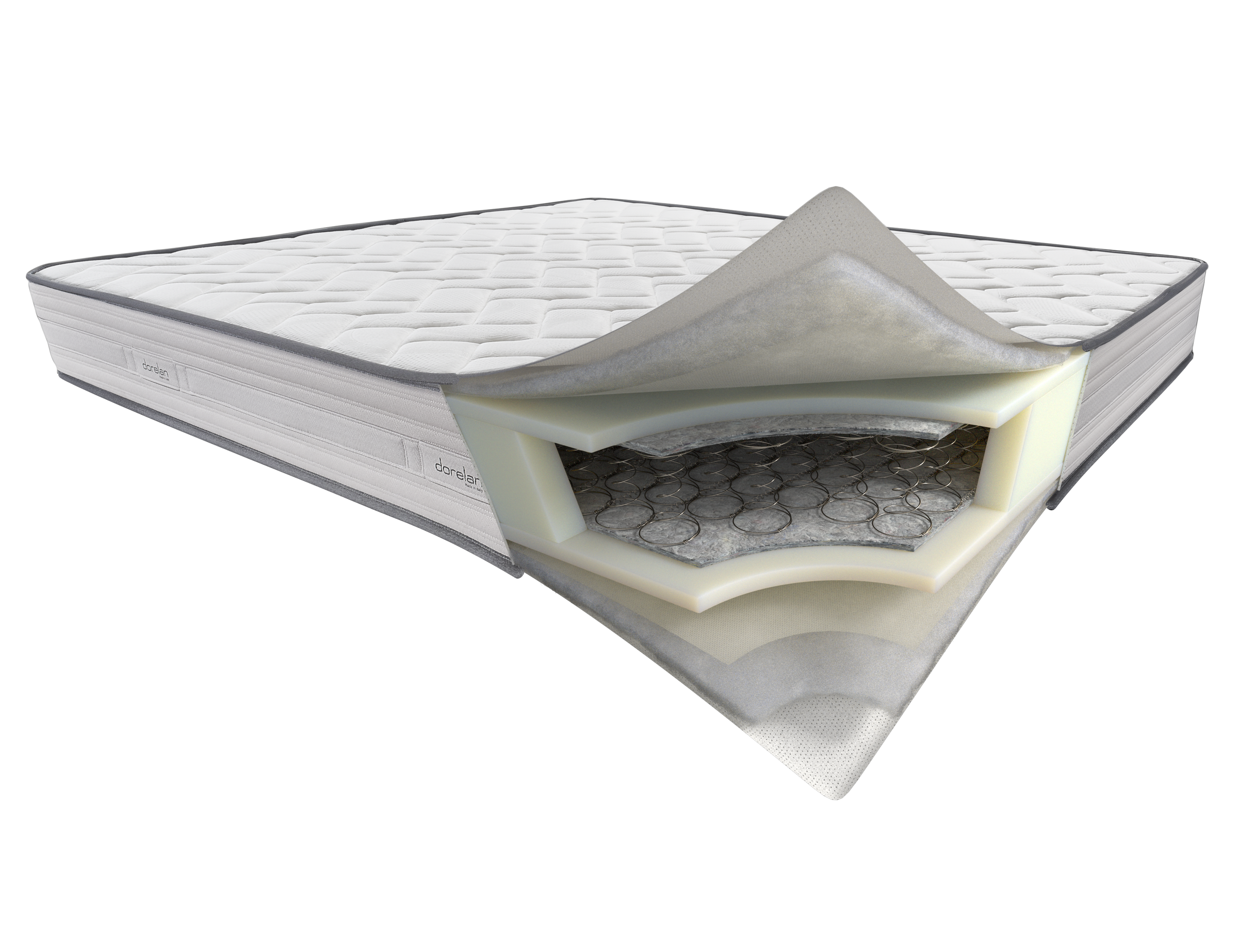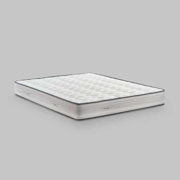 Los muelles interconectados Bonnel tienen forma bicónica y reciben un tratamiento especial que garantiza una firmeza óptima y una prolongada resistencia. Los muelles están entrelazados mediante espirales de acero dispuestas transversalmente en el colchón. La extraordinaria solidez de este sistema preserva las prestaciones de elasticidad y ergonomía del colchón a lo largo del tiempo, favoreciendo un adecuado descanso.