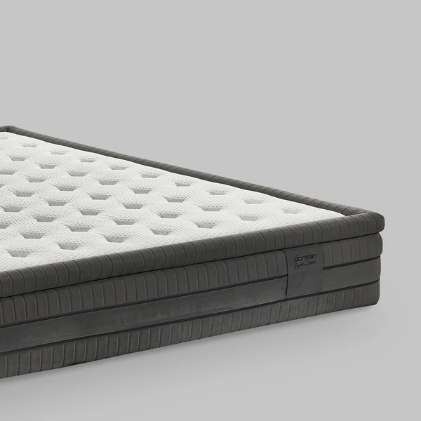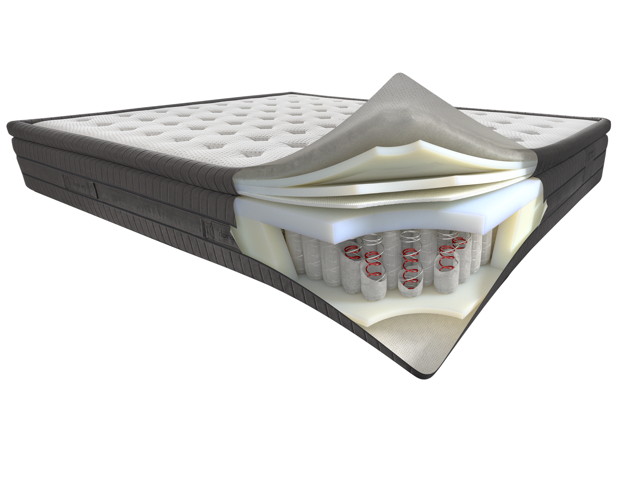 Box combinado con una capa de Myform Memory Air en la parte superior. Tiene una función de refuerzo, para permitir que los muelles funcionen siempre perpendiculares a la superficie de descanso, a la que se añade el beneficio de la ergonomía de Myform Memory Air y su porosidad capaz de eliminar la humedad que emana del cuerpo mientras descansa.