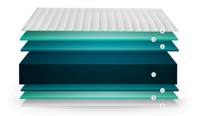 100% Látex. Núcleo de estructura alveolar con millones de células abiertas y 3 zonas diferenciadas que facilitan la aireación, evitando la concentración de humedad.