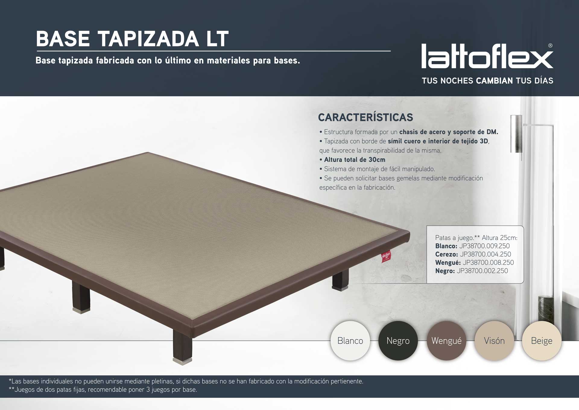 La base tapizada LT está fabricada con materiales de alta gama y aúna sencillez y estabilidad.