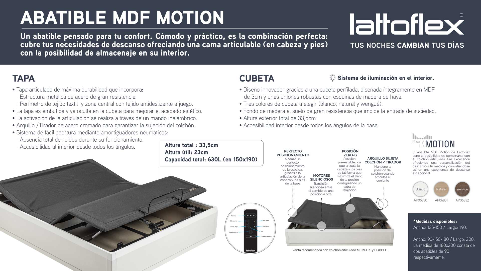 El abatible de madera BOX MDF Motion se articula para ofrecerte una experiencia distinta en el concepto de descanso. Pensado para tu máximo confort y comodidad al permitirte regular la altura de cabeza y pies, adoptando cómodas posturas para leer, ver una serie o dormir.