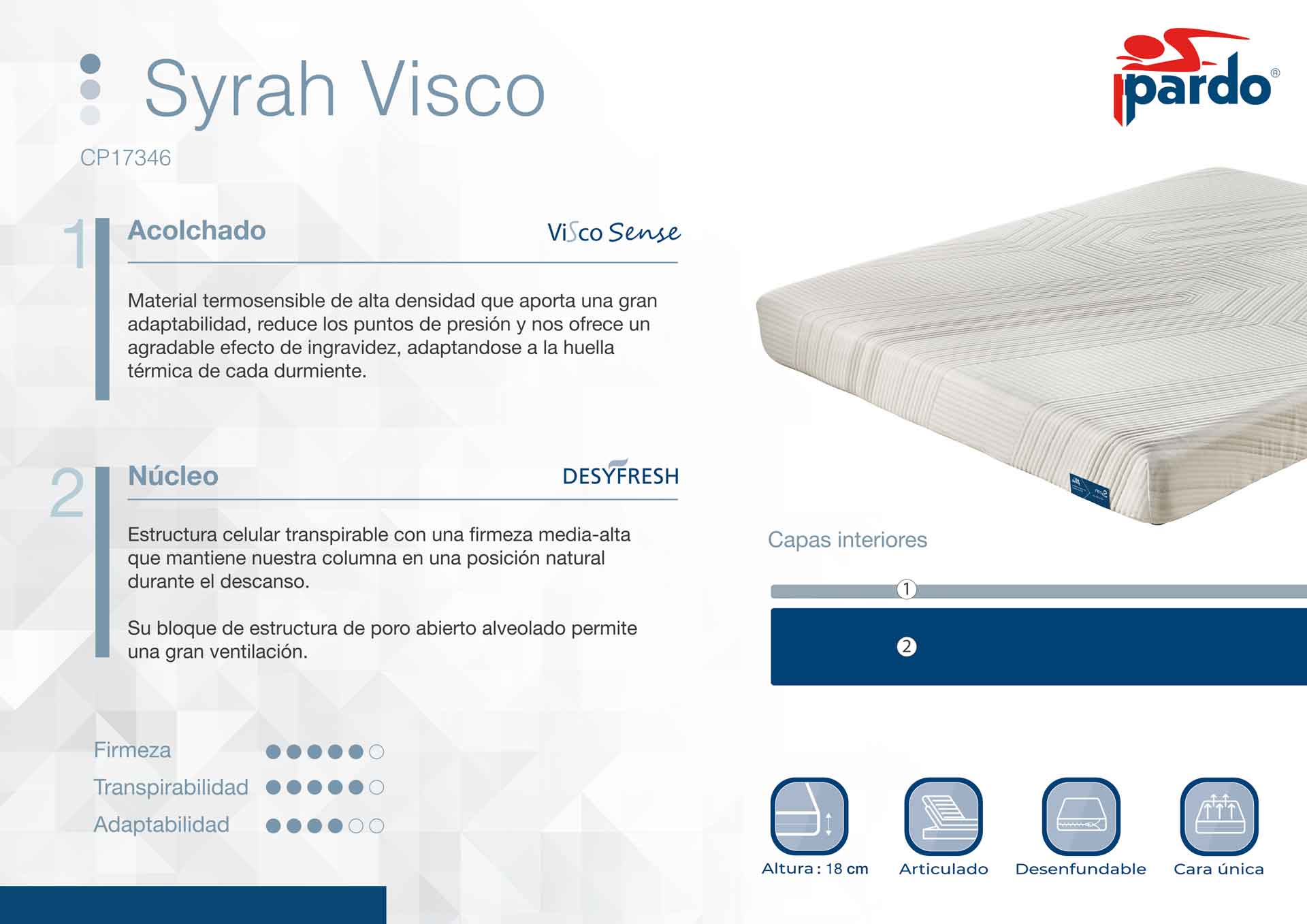 El colchón Syrah Visco ofrece un soporte firme y duradero, manteniendo su forma y adaptándose suavemente a tu cuerpo desde el primer contacto.