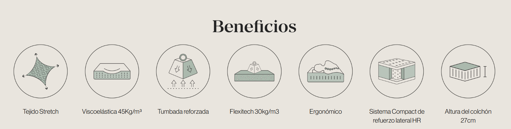 Bloom es el mejor aliado para un despertar de bienestar. Un colchón ergonómico, resistente y transpirable que cuenta con la tecnología más avanzada: Multiadapt, con núcleo HR de alta densidad y Sistema Compact®. Un auténtico placer para amantes del buen descanso.