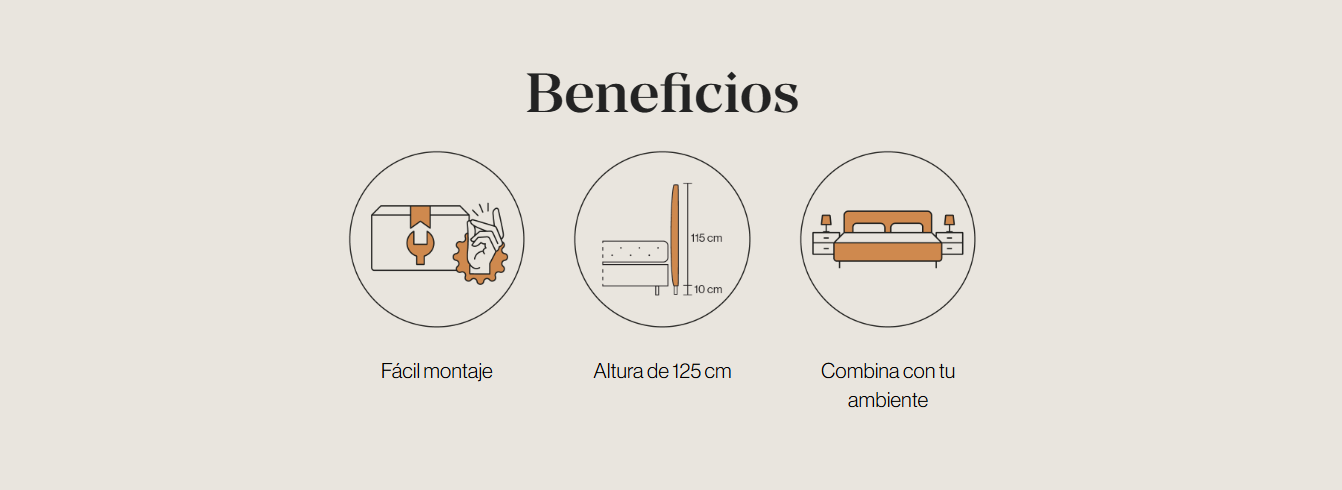 Incluye comodidad y un acabado minimalista en tus dormitorios. Este cabecero tapizado tiene un diseño estilizado y funcional, con solapa de 3 cm alrededor. Viste la cama con elegancia y sencillez, y enamórate cada vez que entres en tu habitación. Apto para colgar o apoyar en el suelo.