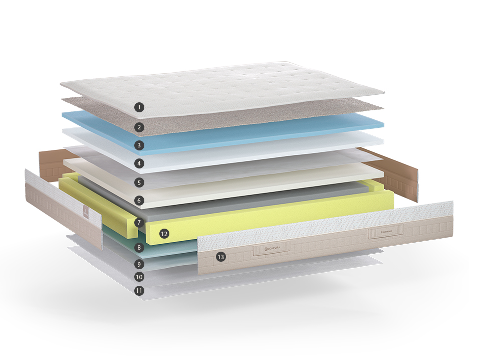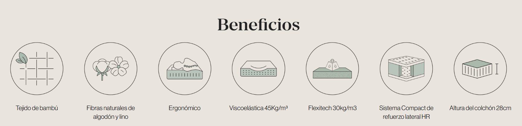 Element es el origen del descanso; la vuelta a un sueño cargado de armonía. Su tecnología Multiadapt, con núcleo HR de alta densidad y Sistema Compact®, garantiza un colchón ergonómico, resistente, transpirable y adaptable. La elección perfecta para amantes de una firmeza media-suave.