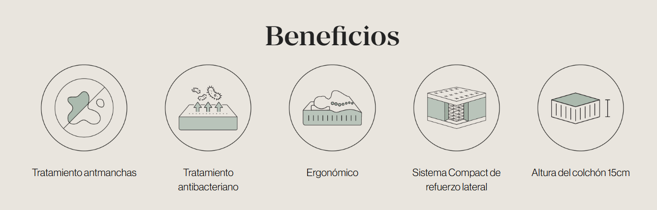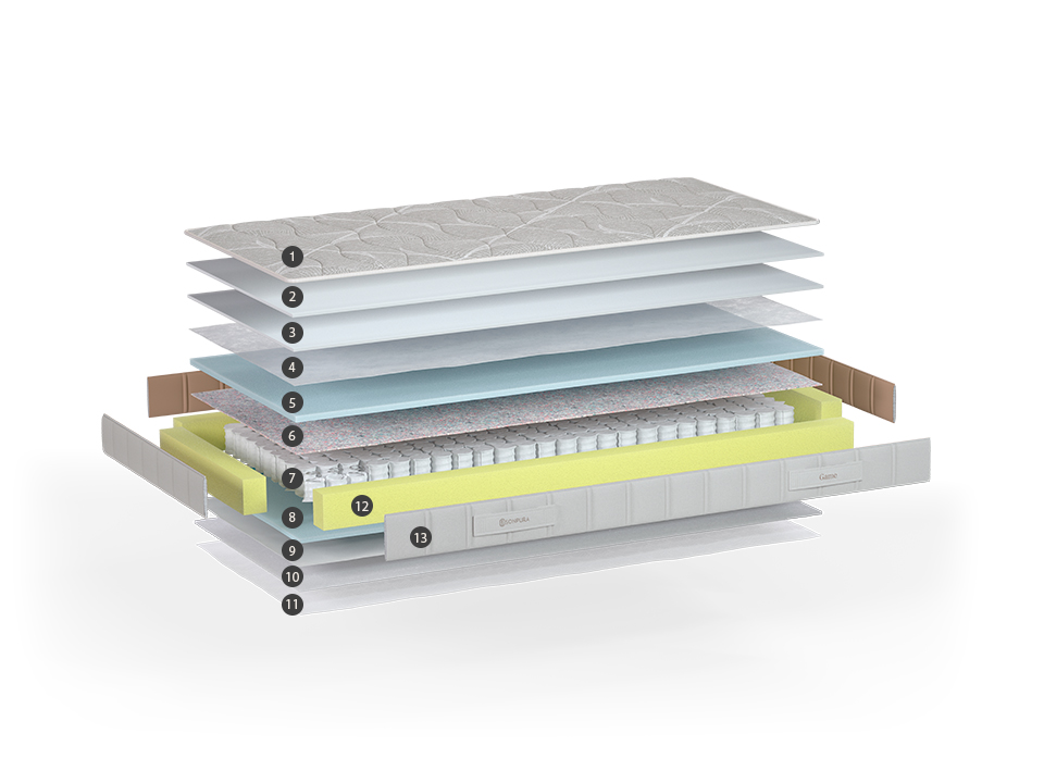 Con un grosor reducido de 15 cm, Game es un colchón ideal para colocar en la parte inferior de las camas nido, con el que podrás optimizar el espacio al máximo sin renunciar al descanso. Con un nivel de firmeza 7 sobre 10, garantiza el mayor confort y transpirabilidad, adaptándose al cuerpo con una total independencia de movimientos. ¡Con tratamiento antimanchas y antibacteriano!