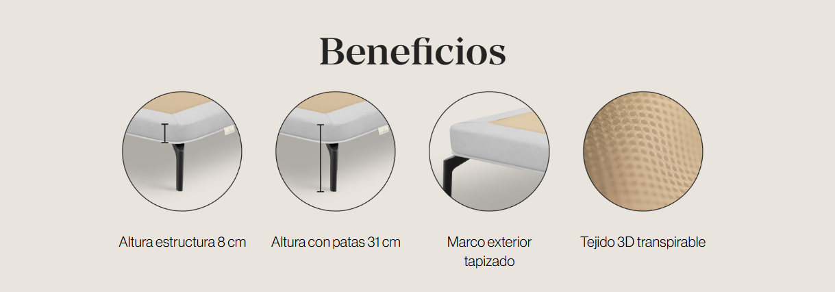 Su nombre lo dice todo. Majestic es una base para colchón que ofrecerá un plus de estabilidad a tu descanso, con una estructura a prueba de movimientos, resistente y robusta, al mismo tiempo que aportará distinción a tu dormitorio gracias a su elegante y vanguardista diseño de líneas redondeadas , con diferentes tapizados y patas disponibles para elegir y un acabado único en cordón.