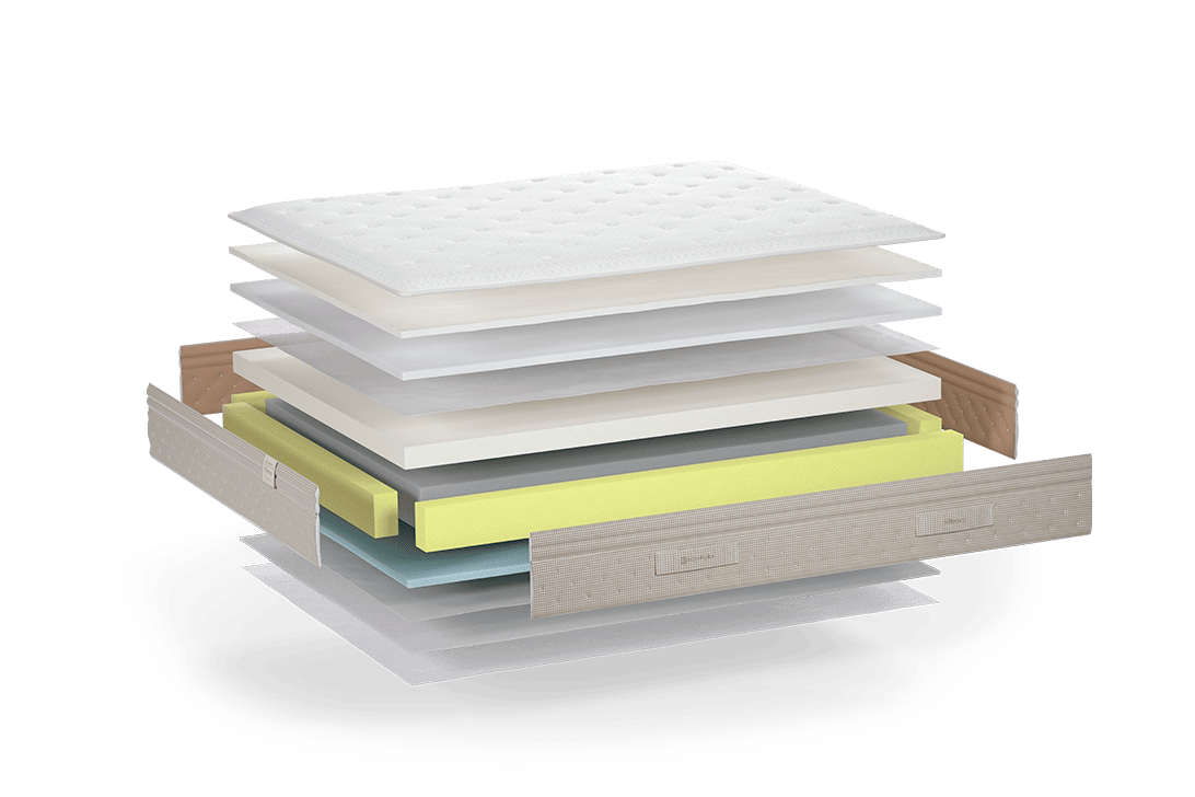 Su acogida, suave y envolvente, es el resultado de la combinación de Viscloud y Softconfort. Mientras que esta viscoelástica, de formulación especial y 50kg/m3, envuelve el cuerpo desde la primera tumbada, Softconfort aporta elasticidad y confort, favoreciendo un descanso más placentero y reparador.