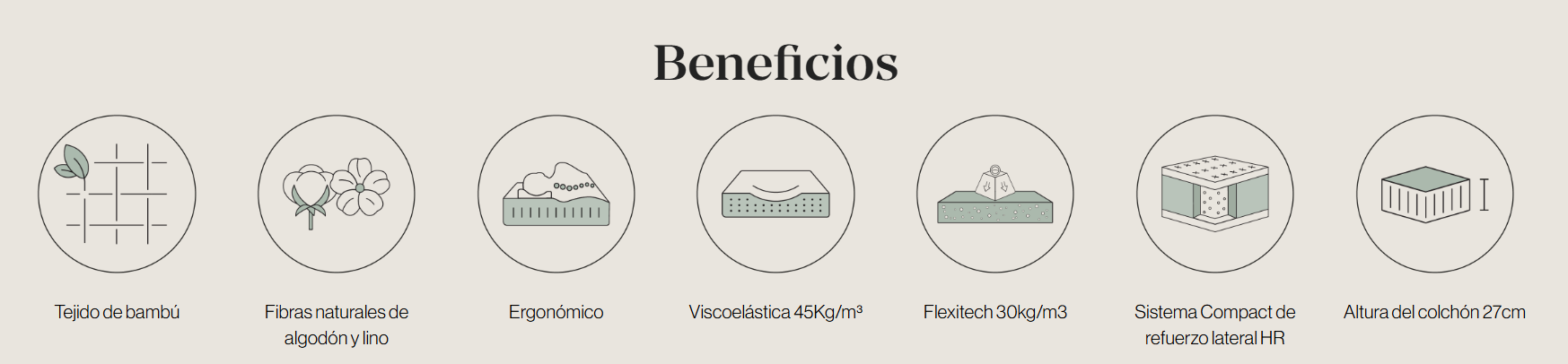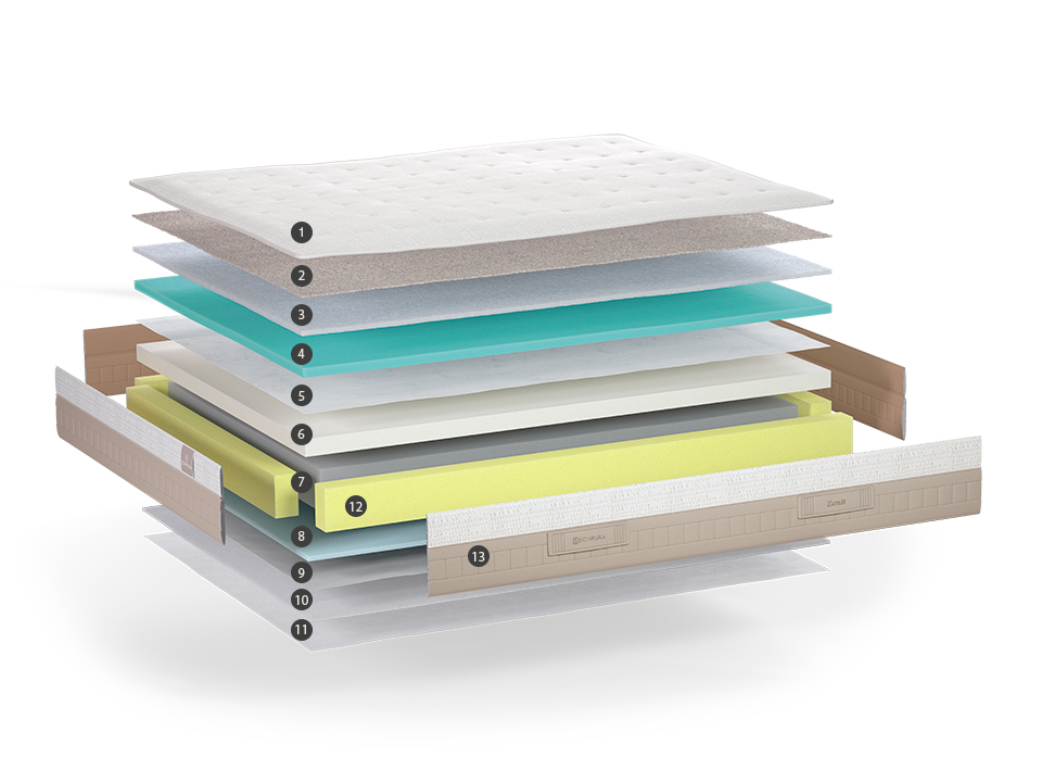 Amantes de la firmeza media-alta, este es vuestro colchón. Con núcleo HR de alta densidad y Sistema Compact®, su tecnología Multiadapt hace de Zenit un colchón resistente, adaptable, transpirable y ergonómico. Un producto que, además, presenta un tacto suave y sedoso gracias a las fibras de bambú presentes en su tejido.